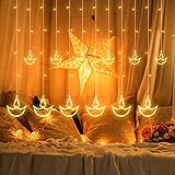 88% OffFLYNGO 12 Diya Diwali Curtain String LED Lights for Decoration, Window Lights with 8 Flashing Modes, Home Decoration for Diwali, Wedding, Party, Christmas, Balcony - Warm White (12 Diya)